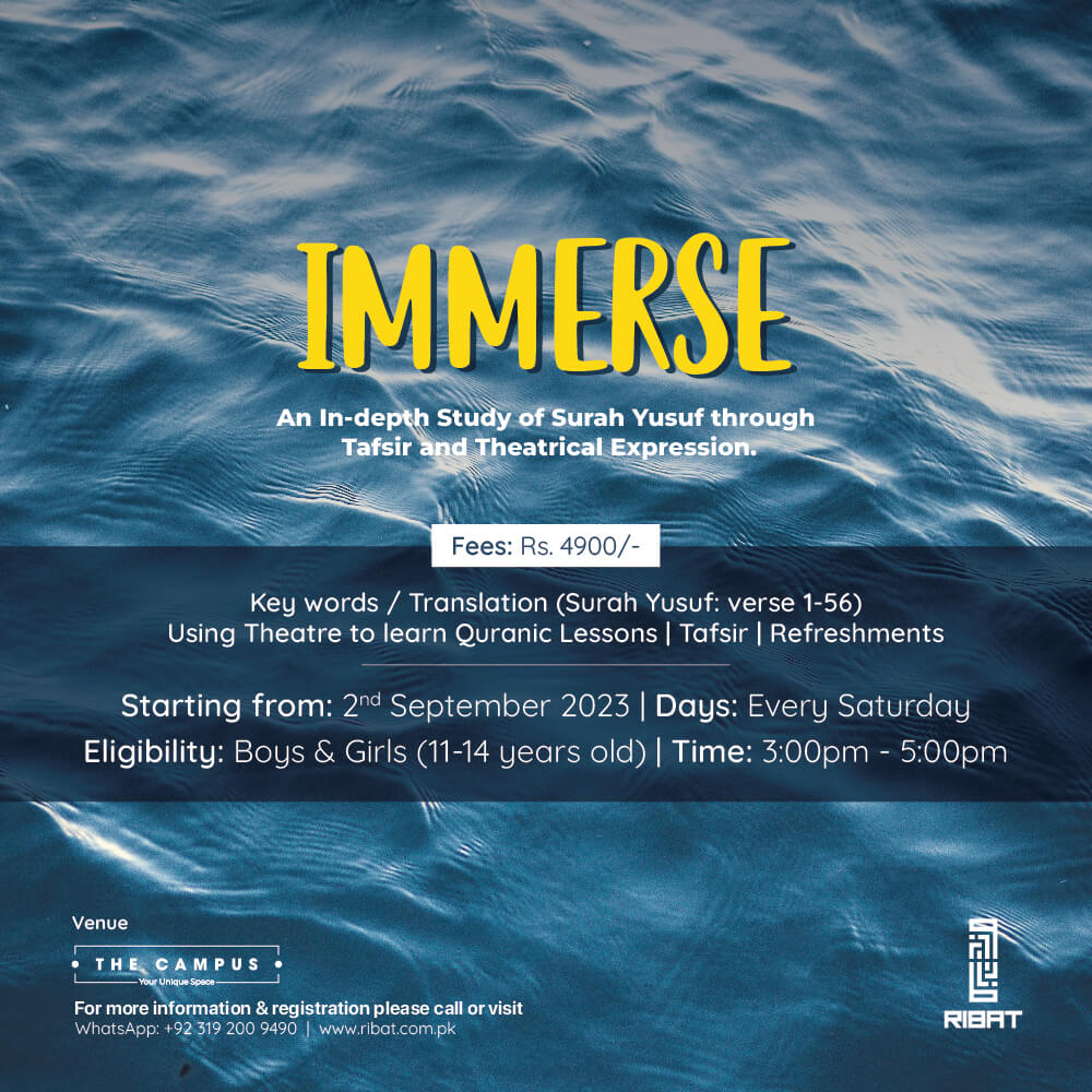 Immerse is a transformative program designed to cultivate a deep, personal connection with the verses of the Quran. Through interactive Tafsir sessions, reflective exploration of Quranic lessons, and therapeutic clay work classes, participants are guided toward spiritual growth and meaningful understanding.